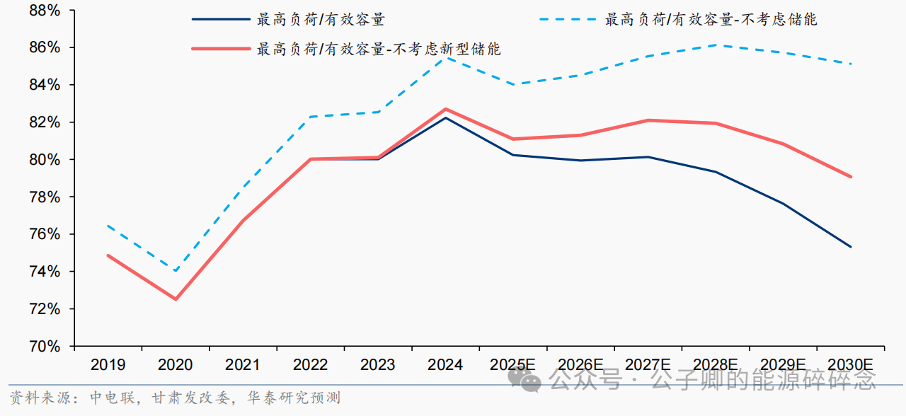 2)考虑抽蓄,该比例在2026-30年会从2024年的83%下降至79%;
